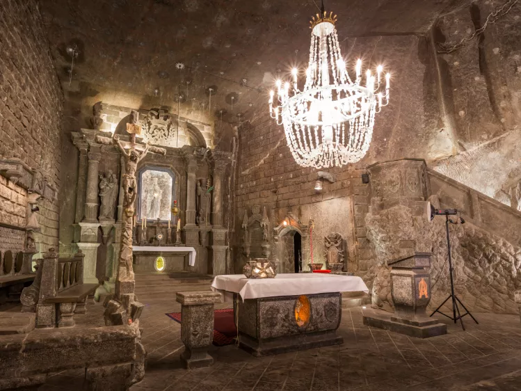 Je krijgt de mogelijkheid om samen met een gids door de prachtig versierde zalen te wandelen, volledig uit het zout gehouwen.