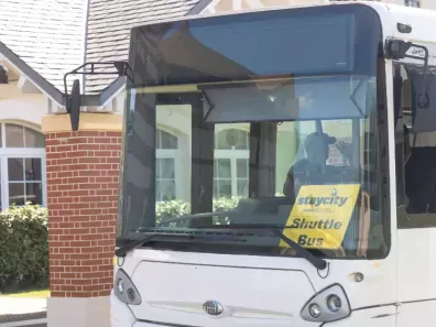 Er rijdt in de ochtend en in de avond een gratis shuttle bus van en naar de parken. Tegenover het hotel staat een bushalte, vanaf hier kun je met de openbare bus naar de Disney Parken.