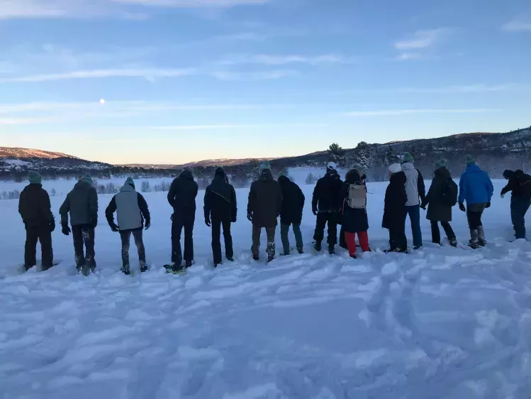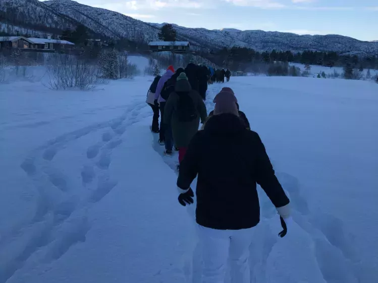 Aangezien het bedrijf overdag eerst nog open is, vertrekken we 's avonds pas naar Noorwegen. Het is nog even rijden van Oslo naar Geilo, dus midden in de nacht komen we aan bij ons hotel. Na een korte nacht, is de volgende ochtend voor iedereen vrij. Zo kan iedereen even bijkomen van de late aankomst en rustig ontbijten. Vanmiddag gaan we dan echt kennismaken met deze winterwonderland bestemming! De groep wordt in tweeën gedeeld waarbij de eerste groep een sneeuwschoenwandeling gaat volgen en de tweede groep op husky safari gaat. Het is koud, maar zonnig wat zorgt voor mooie plaatjes! Bij de husky's wordt er genoten van de honden, de tocht door de sneeuw en het warme kampvuur. De sneeuwschoenwandeling is prachtig door het winterse landschap. Het is even wennen met ander schoeisel, maar al gauw lopen we goed achter de gids aan. Tijdens het diner in het hotel komen we weer bij elkaar om elkaar te vertellen over onze belevenissen. De muziek gaat aan (we zijn de enigen in de dinerzaal) en er wordt een leuk jubileumfeestje gevierd! Ook zijn er sleetjes aangeschaft en wordt er op de helling naast het hotel nog een klein wedstrijdje georganiseerd.
