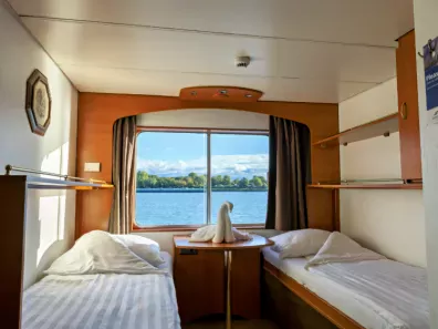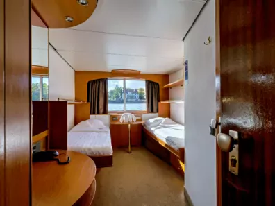 Dit comfortabele schip combineert een intieme, gezellige sfeer met uitstekende service en moderne voorzieningen. De persoonlijke en gastvrije sfeer zorgt ervoor dat u zich direct op uw gemak voelt. Het cruiseschip biedt hutten verdeeld over 2 dekken.