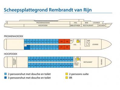 Met zijn fraaie interieur en de uitmuntende verzorging aan boord, staat de Rembrandt van Rijn met recht te boek als exclusief. Het schip is royaal opgezet, met een riante entree, een groot restaurant en ruime hutten. De prachtige kleuren en mooie materialen zorgen voor een warme uitstraling.