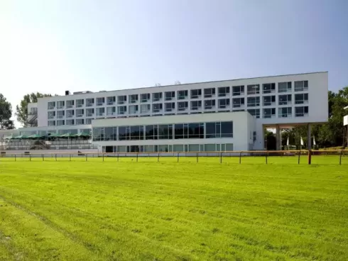 Het hotel grenst aan de paardenrenbaan , aan de rand van Bremen.