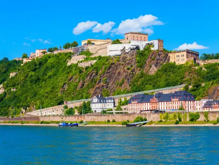 - Vesting Ehrenbreitstein in Koblenz met uitzicht over de Rijn en Moezel