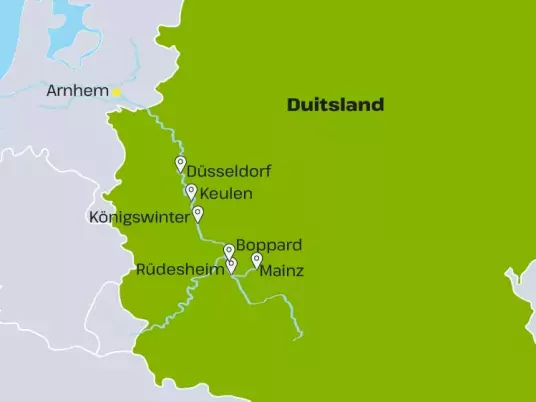 Na een laatste ontbijt aan boord varen we rustig terug naar Nederland. Rond 11:00 uur meren we aan in Arnhem en nemen we afscheid van elkaar. Je keert huiswaarts met prachtige herinneringen aan de indrukwekkende kastelen en rotsen van de Romantische Rijn, de levendige steden en de ontspannen momenten aan boord.