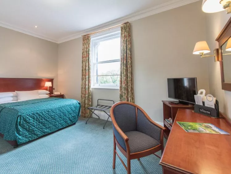 De kamer is voorzien van een telefoon, tv, thee- en koffiezetfaciliteiten en een badkamer met bad of douche en toilet.