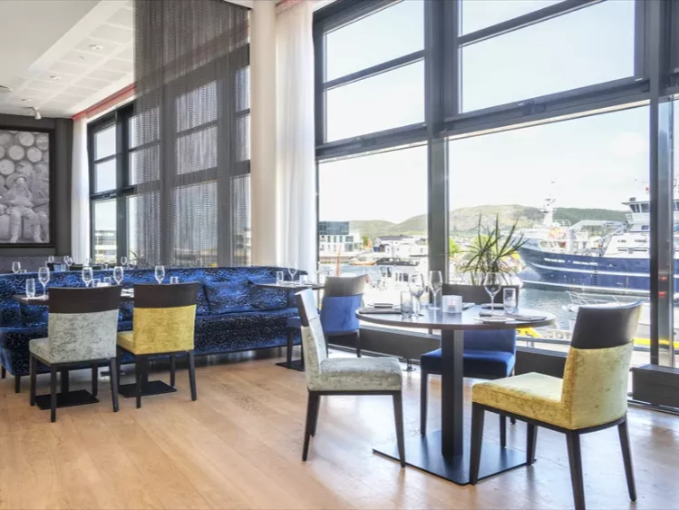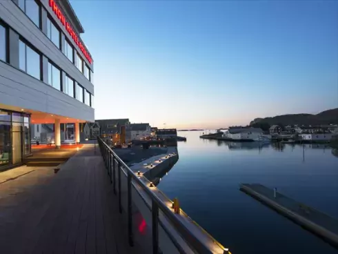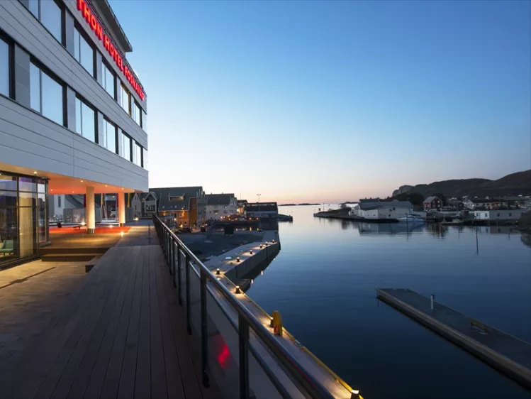 Het hotel ligt aan de Noorse westkust, direct aan de haven van Fosnavåg.