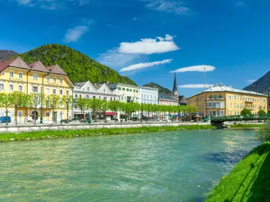45 kmVanaf het hotel fietsen we naar Bad Ischl en we raden je aan even een bezoek aan deze keizerstad te brengen. Bewonder het charmante stadscentrum of breng een bezoek aan de voormalige zomerresidentie (€) van keizer Franz Josef en Sissi. Vervolgens ga je op weg naar Strobl en voert de route langs de Wolfgangsee naar St. Gilgen.
