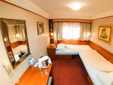 Je zult je zeker vanaf het eerste moment aan boord thuis voelen op dit prachtige schip. Op de verschillende passagiersdekken bevinden zich 74 hutten met een comfortabele elegantie en een gezellige sfeer. Tijdens uw verblijf aan boord kun je gebruik maken van alle faciliteiten. Culinaire hoogstandjes wachten op je in het panoramarestaurant. Vanaf het zonnedek of de panoramalounge (met bar en dansvloer) kun je op elk moment genieten van het uitstekende uitzicht.