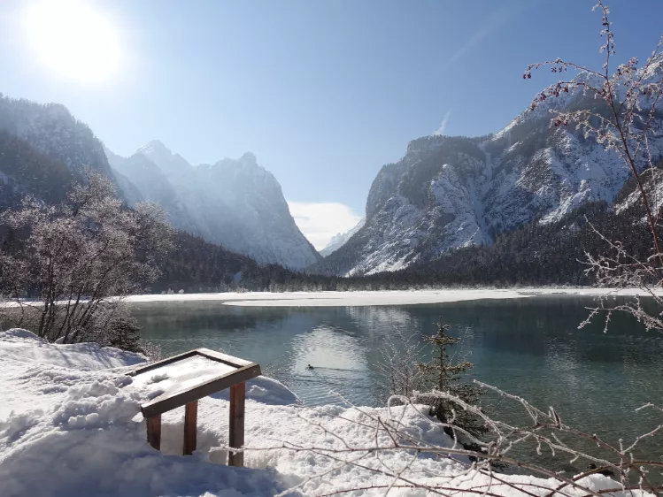 Vandaag rijden we iets verder om een prachtig langlauf- en wandelgebied te bereiken. We steken de grens met Italië over en gaan naar het langlaufgebied 'Drei Zinnen'. In totaal vind je hier 200 kilometer aan gespoorde loipen waardoor het een waar langlaufparadijs is. Vanuit Toblach heb je verschillende mogelijkheden om een mooie langlauf- of wandeltocht te maken. Populair is de route langs het meer van Toblach waarbij je geniet van een prachtig uitzicht op de Italiaanse Dolomieten.
