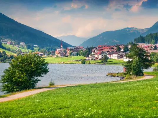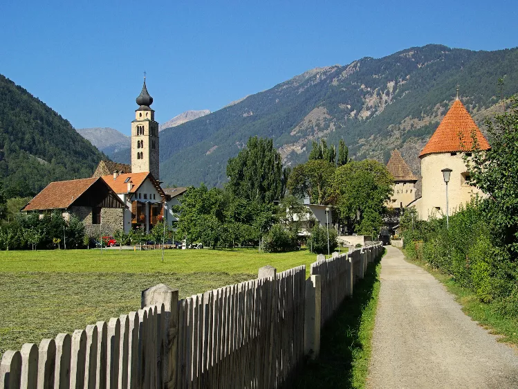 5 kmItalië en passeren de beroemde Reschensee met de verzonken kerktoren van Alt-Graun. Even voorbij de Reschensee vinden we de Haidersee, en mooi startpunt voor de eerste wandelroute van deze reis. Het is een vlakke wandeling van ca. 5 km rondom het meer. Na deze wandeling bezoeken we het kleinste stadje van Zuid-Tirol; Glurns.
