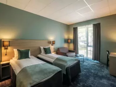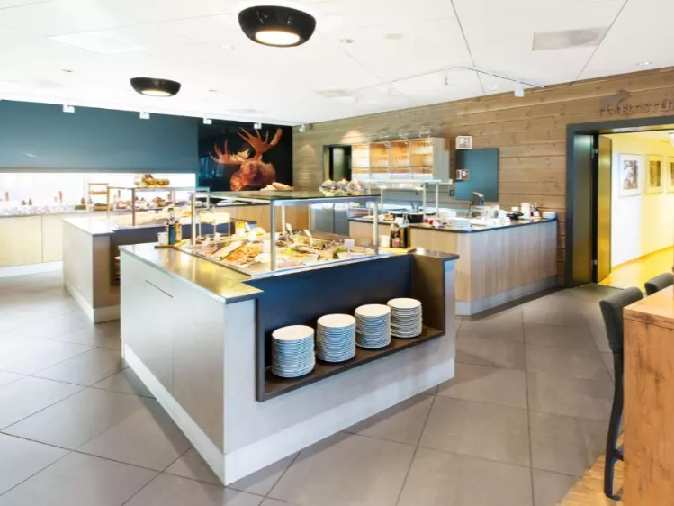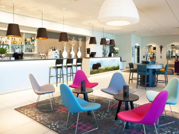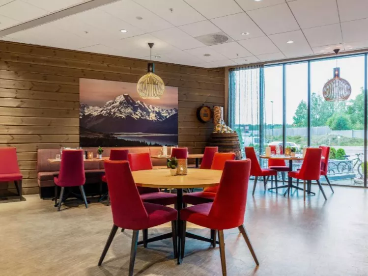 Het moderne hotel ligt aan de rand van de plaats Elverum.