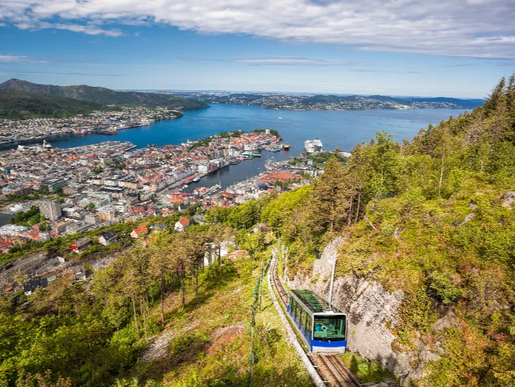 85 kmOnderweg naar de Hanzestad Bergen bezoeken we de Steinsdalsfossen, een prachtige waterval waar je achterlangs kunt lopen. Vervolgens bereiken we de hoofdstad van de fjorden, Bergen. De hanzehuizen aan de Bryggenkade getuigen van deze glorietijd. Na de stadswandeling heb je genoeg tijd om zelf de stad te verkennen. Zo kun je met de Fløibanen de Fløyberg op, vanwaar je een prachtig uitzicht over de stad hebt (optioneel, kosten ca. € 20,- p.p.). We overnachten in het centrum van Bergen.