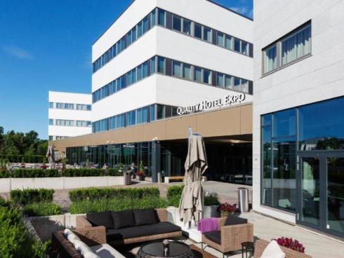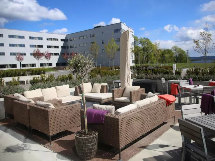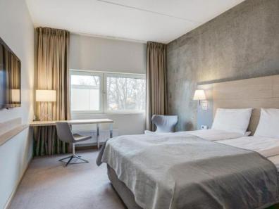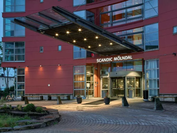 Het hotel ligt in Mölndal, aan de rand van Göteborg.