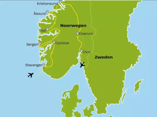 Vanaf het water ontdekken we de Lysefjord met de machtige Preikestolen. Ook varen we door de Geirangerfjord waarbij je geniet van de 300 m hoge 'zevenzusters' waterval. Maar ook rijden we de mooiste routes, zoals de Trollstigen en de Atlantische Weg. Onderweg doen we levendige havenplaatsen aan zoals Bergen, Stavanger en het kleurrijke Ålesund. Je ontdekt deze complete fjordenreis samen met onze eigen Oad reisleider die je de gehele reis begeleidt.