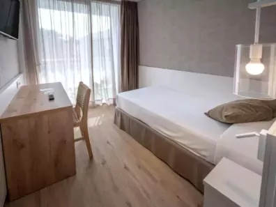 De kamers zijn modern en netjes ingericht en beschikken over airco, gratis wifi, kluisje (€), bureau, televisie en badkamer met bad of douche, toilet en föhn.