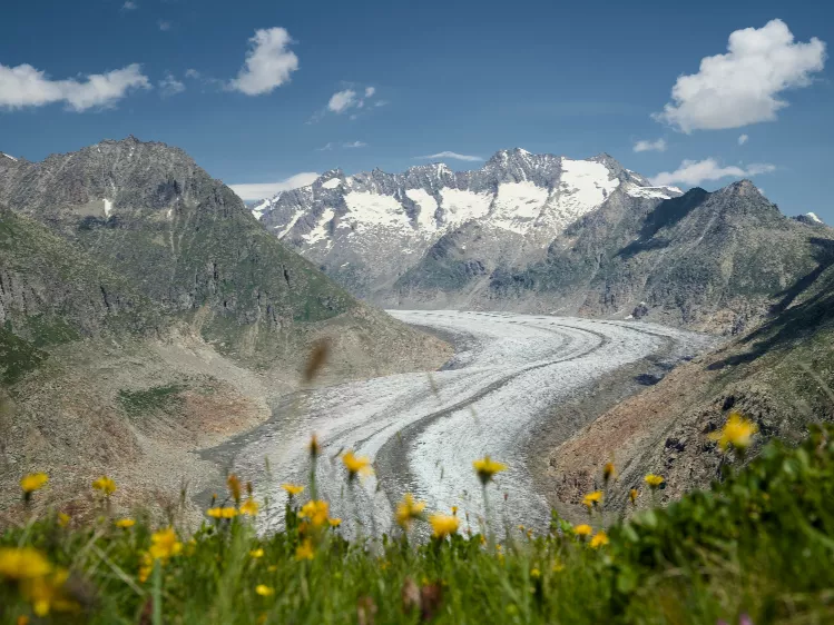 De Aletschgletsjer is de grootste gletsjer van de Alpen en slingert zich over een lengte van ruim 20 kilometer door het landschap. Vanaf de verschillende uitzichtplatformen heb je een schitterend panorama over de laaggelegen gletsjer. We nemen je mee naar het uitzichtpunt Eggishorn op bijna 2900 meter hoogte, die we per kabelbaan (€) bereiken. Vanaf de Eggishorn heb je niet alleen zicht op de gletsjer, je ziet ook de alpenreuzen Jungfrau, Eiger en Mönch. Nadat we van het uitzicht hebben genoten nemen we de kabelbaan naar het tussenstation op de Fiescheralp. Vanaf hier volgt een wandeling van 7 km die je via de Bettmeralp naar de Riedelalp brengt. De wandeling gaat grotendeels bergaf en onderweg heb je een prachtig uitzicht op de Rhônevallei en de Matterhorn. Vanaf de Riedelalp nemen we de kabelbaan naar het dal. Voor het gebruik van de kabelbanen heb je de Aletsch Entdeckerspas nodig (optioneel, kosten ca. € 50,- p.p., ter plaatse te verkrijgen).